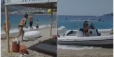 Užasnuti posmatrači snimili su trenutak kada se Tase (u ružičastom kupaćem kostimu) tuče sa Bledarom (u crnom kupaćem kostimu) i to dok građani pokušavaju da ih razdvoje.