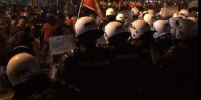 Učesnici protesta, predvodjeni DPS-om predsednika Mila Đukanovića, SDP-om i SD-om, zvižducima su ispratili usvajanje zakona, a nakon toga su ka zgradi parlamenta, koju obezbeđuju jake policijske snage, bacili kamenice i flaše, prenosi RTCG.