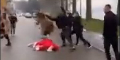 U jednom trenutku muškarac obučen u Deda Mraza završio je na podu, a s druge strane se drugi mladić zaleteo pa ga udario nogom u glavu. U tom trenutku je nastao haos te su se mnogi dali u bijeg, a "Deda Mraz" je ostao da leži.