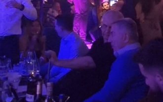 Na snimku se može videti kako pokretima ruke Čanak nešto objašnjava Đukanoviću, a da bi ga predsednik Crne Gore bolje čuo, lider LSV-a se naginje i nešto mu govori na uvo. Na stolu ispred njih je pregršt skupocenih pića.