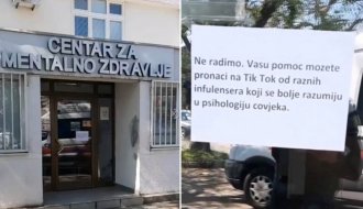 "Ne radimo. Vašu pomoć možete pronaći na Tik Tok od raznih influensera koji se bolje razumeju u psihologiju čoveka", napisano je na papiru zalepljenom na vratima. Nije poznato ko je ostavio ovu poruku.