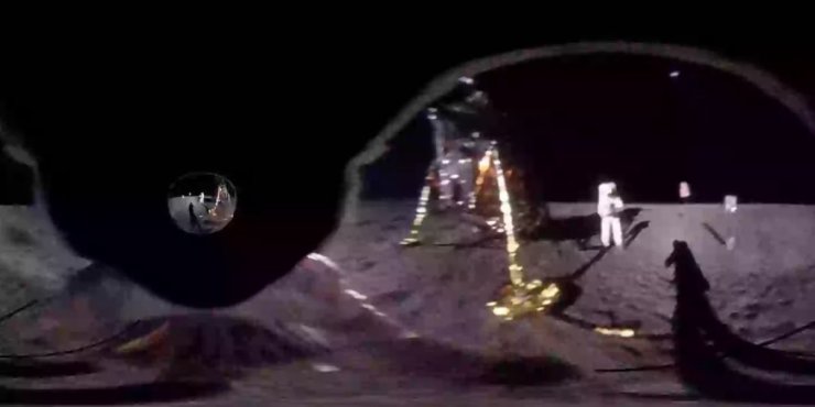 Nakon poboljšanja slike, Rendžer je rekonstruisao panoramski pogled od 360°, otkrivajući ceo prostor unutar kacige Baza Oldrina. U ovom novom pogledu vidimo ne samo astronauta u višoj rezoluciji već i našu planetu, Zemlju, u obliku male bledoplave tačke .