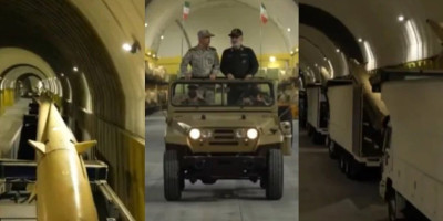 General-major Mohammad Bagheri, načelnik štaba Oružanih snaga, i brigadni general Amir Ali Hadžizadeh, komandant Vazdušno-kosmičkih snaga IRGC, snimljeni su kako putuju kroz objekat obložen stotinama projektila.