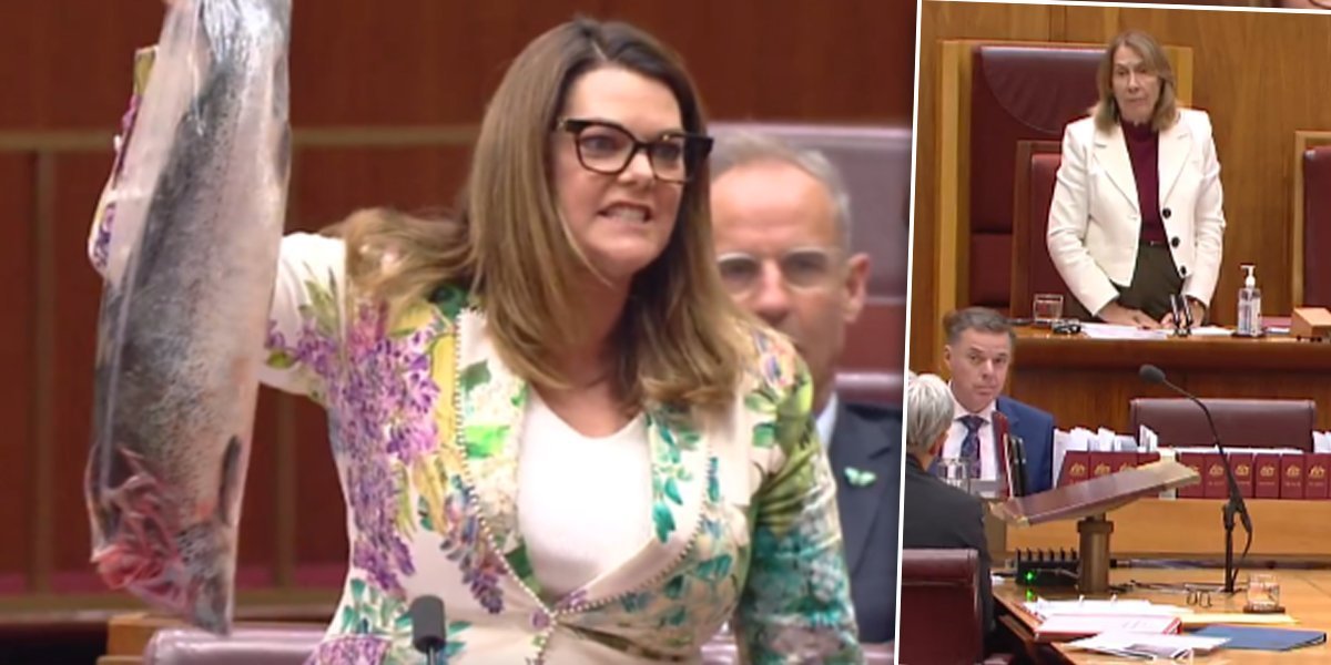 Senatorka Sara Henson-Jang donela je mrtvog i trulog lososa u australijski parlament kako bi upozorila na štetnost zakona kojim se podstiče uzgajanje lososa.