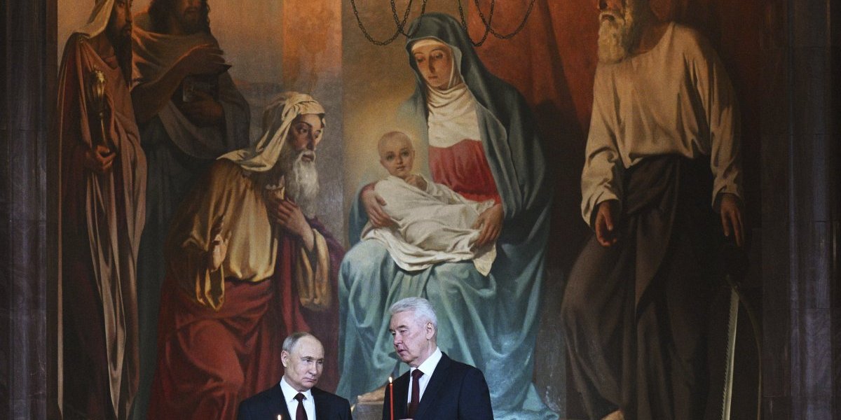 Ruski predsednik je, držeći upaljenu crvenu sveću i obučen u tamno odelo sa crvenom kravatom, više puta prekrstio se na reči „Hristos vaskrse“ koje je izgovorio patrijarh Kiril. Iako je poruka službe bila u znaku mira, ona je bila isprepletana i političkim porukama.