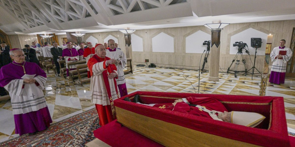 Telo pape Franje, koji je preminuo juče u Vatikanu u 88. godini života, izloženo je u Domu svete Marte, gde je i stanovao tokom svog pontifikata, umesto u tradicionalnoj apostolskoj palati.