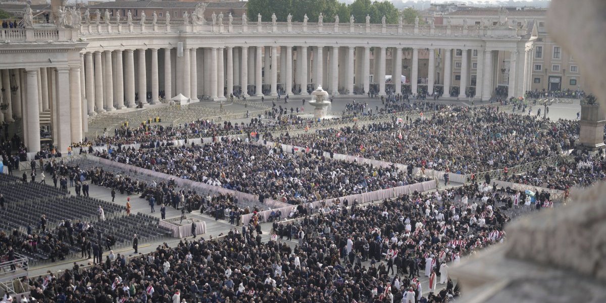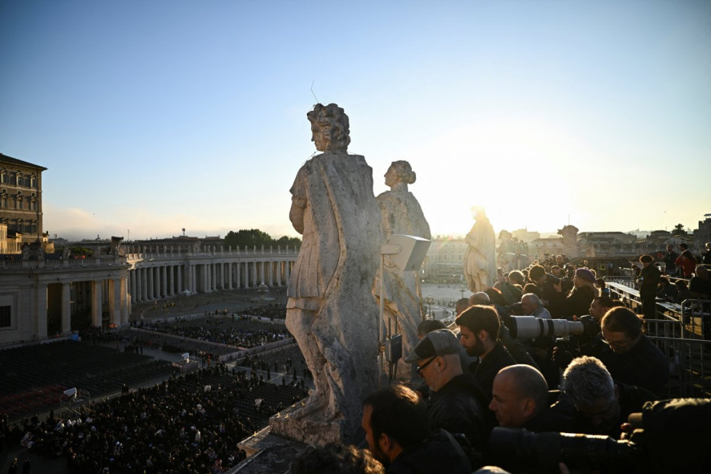 10:00: Počinje pogreb polaganjem tela na trg ispred Bazilike svetog Petra. Službu će predvoditi dekan Kardinalskog zbora, kardinal Đovani Batista Re
