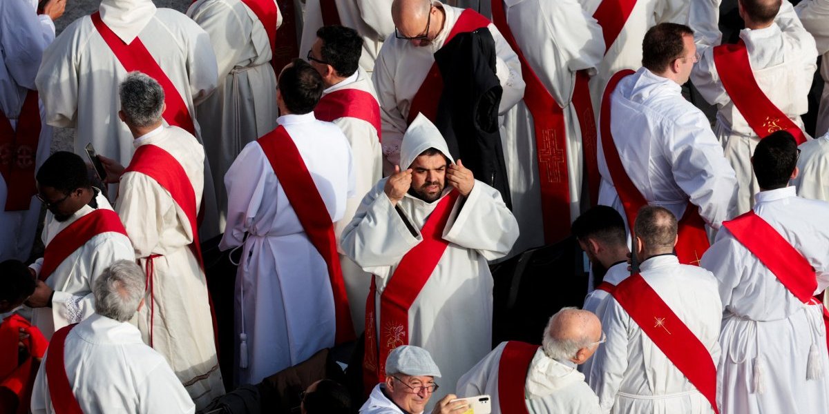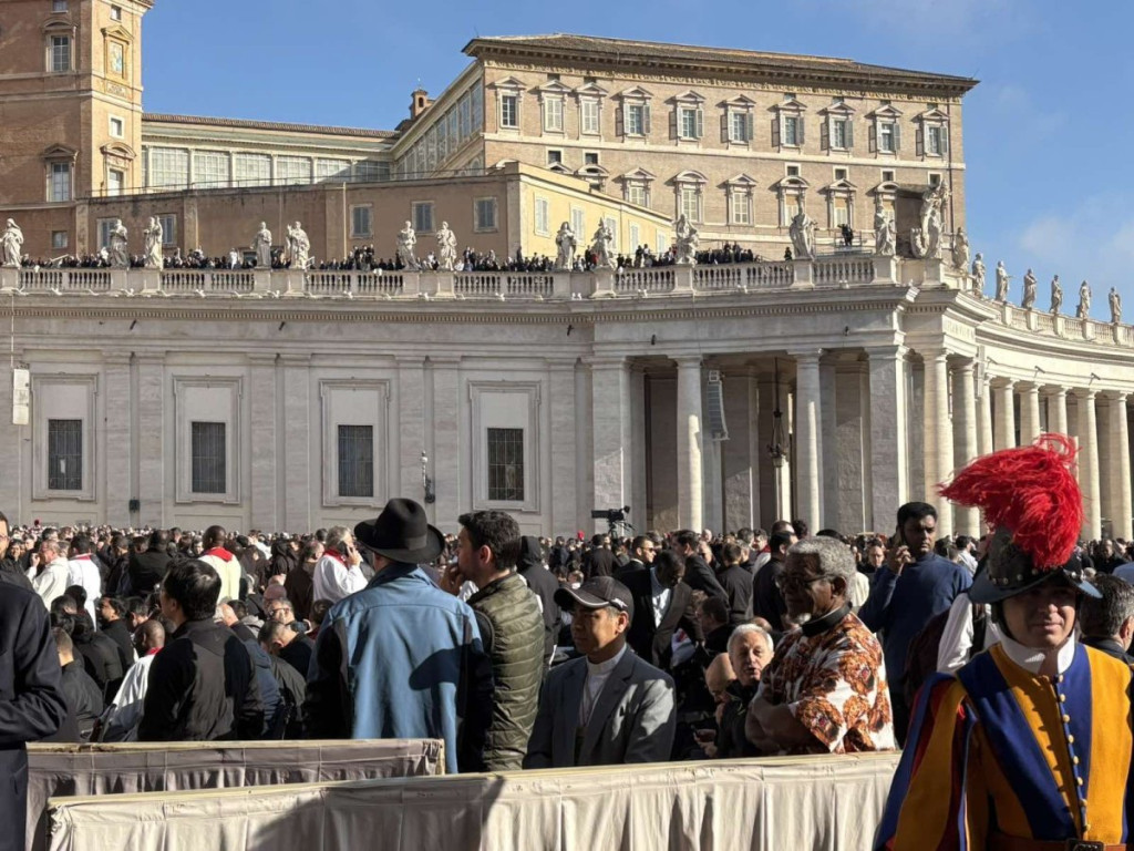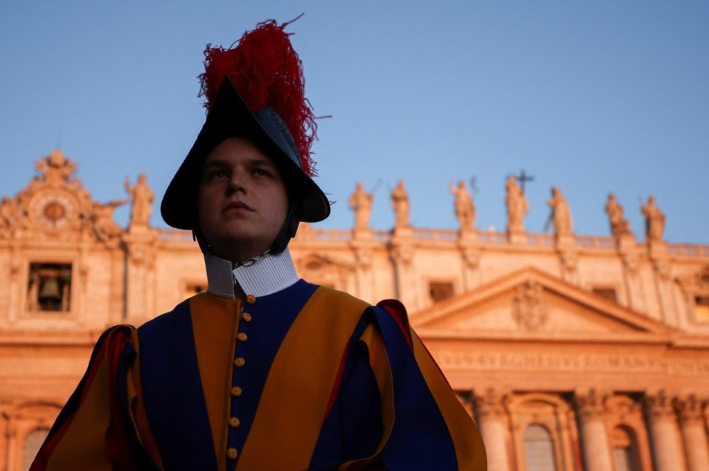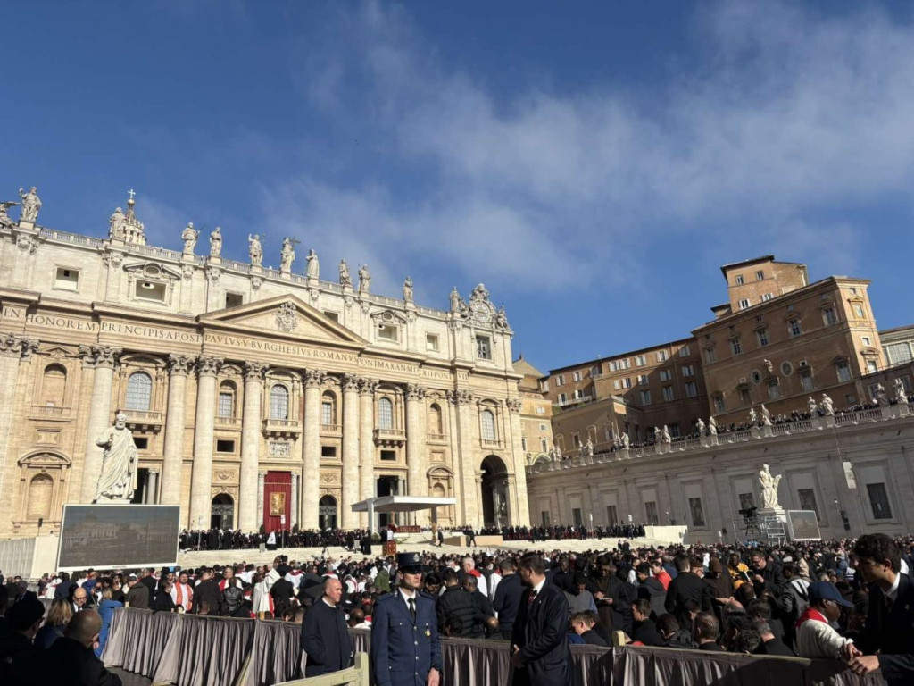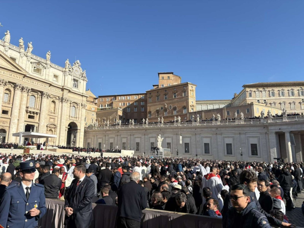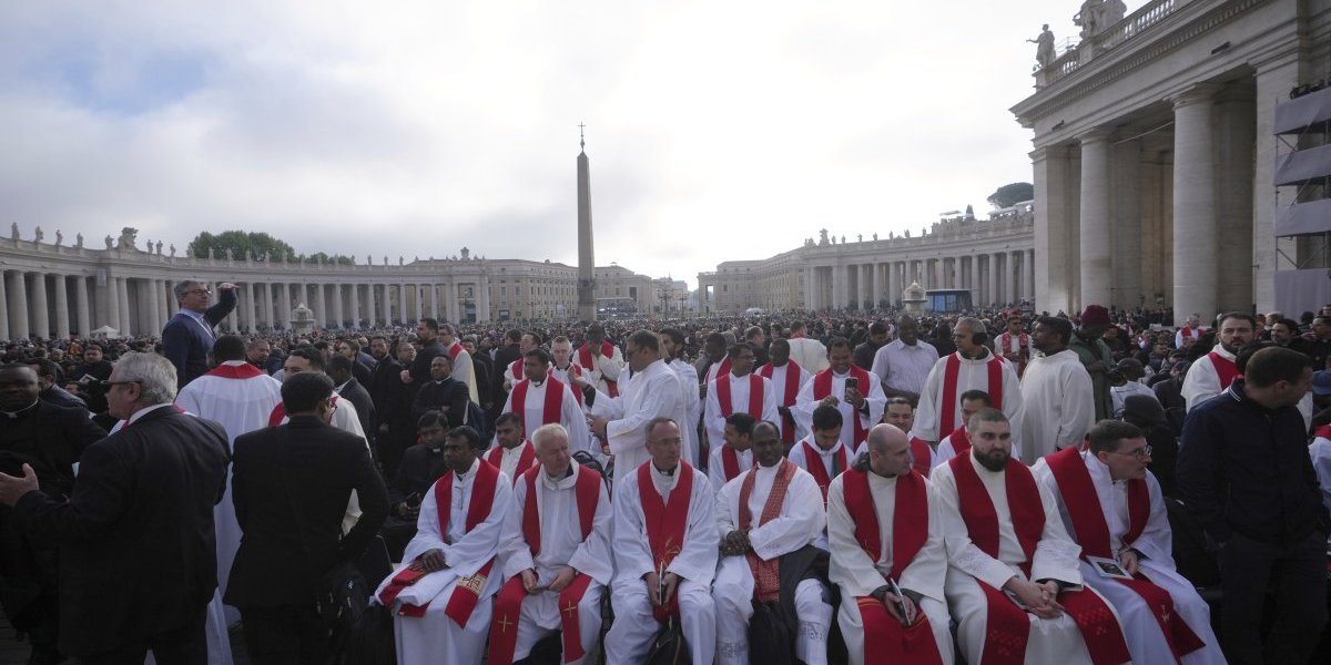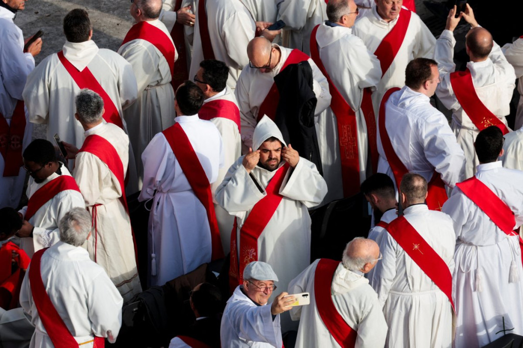08:30: Nadbiskupi i biskupi okupili su se u Konstantinovom krilu, hodniku uz Baziliku svetog Petra - katolički sveštenici počeli su da se okupljaju na Trgu svetog Petra