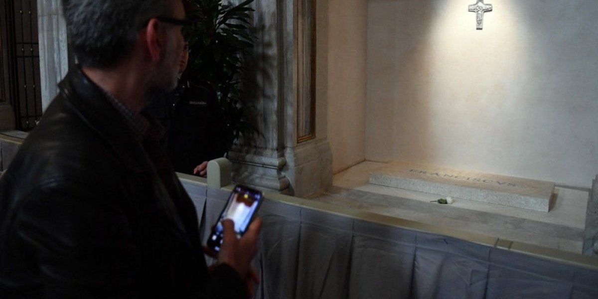 Na fotografijama se vidi jedna bela ruža kako leži na kamenoj grobnici na kojoj je ispisano ime koje je Horhe Mario Bergoljo izabrao kada je postao poglavar Katoličke crkve.