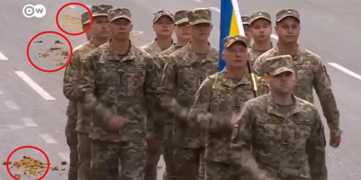 Pored toga, zabeleženo je i da je ukrajinska zastava bila postavljena na platnu pogrešne dužine, zbog čega se državna zastava vukla po asfaltu dok su vojnici prolazili.