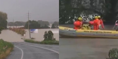 Televizijski snimci prikazali su raskrsnice pod vodom i gotovo potpuno potopljene ulične znakove, dok su automobili bili uronjeni do vetrobranskih stakala, nakon što su nabujale reke probile obale u regionima Hanter i Srednja severna obala, u australijskoj saveznoj državi Novom Južnom Velsu.