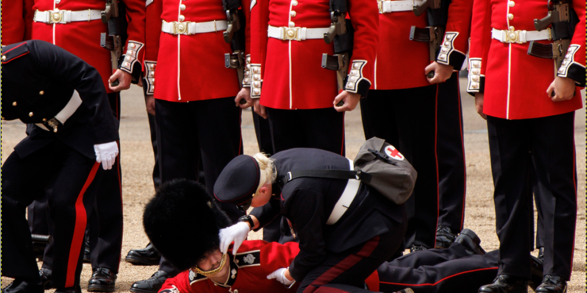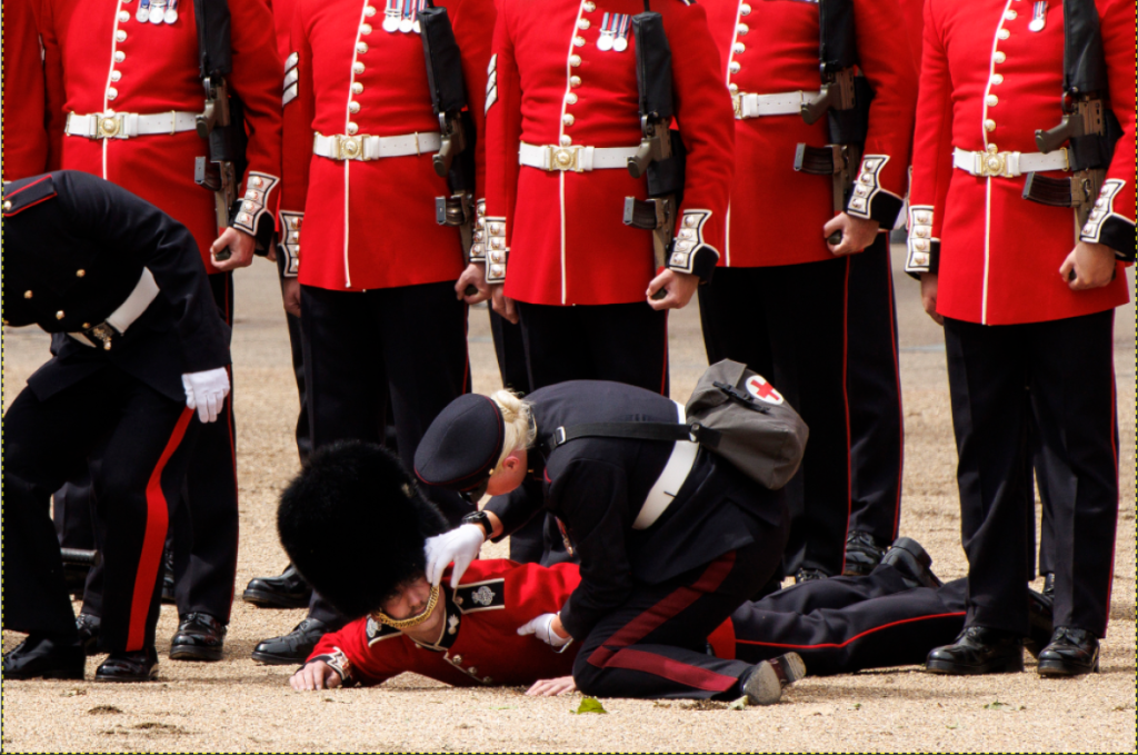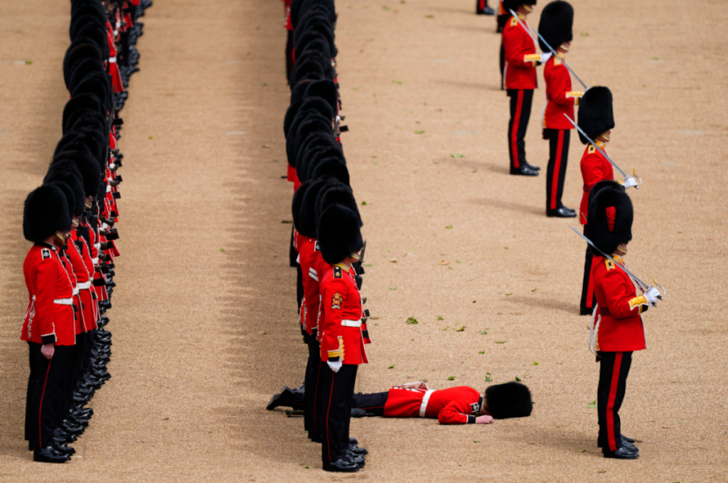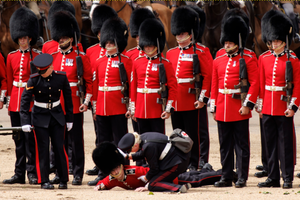 Tako je prošlog marta, video na kome se vojnik Irske garde teturao i skoro se srušio tokom ceremonije, da bi mu kolega priskočio u pomoć i pridržao da ne padne izazvao uzbunu na društvenim mrežama.