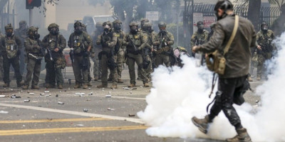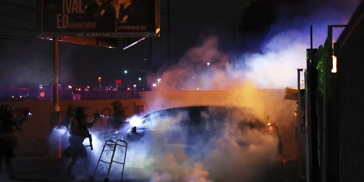 Sukobi između policijskih snaga za suzbijanje demonstracija i aktivista koji protestuju protiv imigracijskih racija izbili su u sinoć u centru Los Anđelesa, nakon serije federalnih racija tokom dana, u kojima je, prema izveštajima, privedeno nekoliko desetina osoba širom grada.