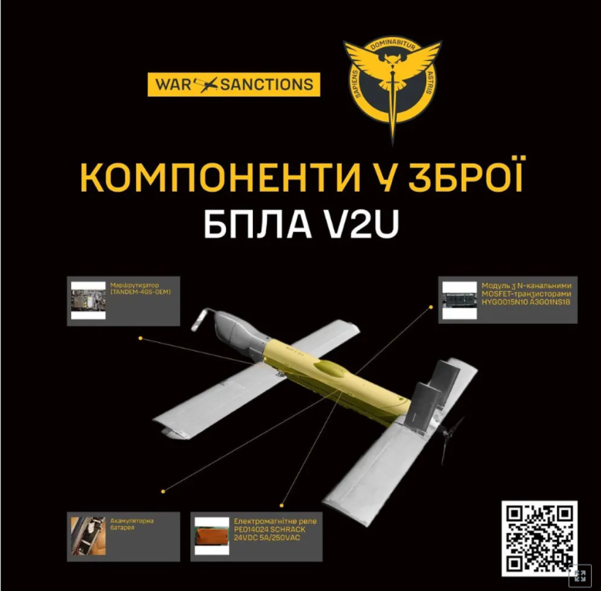 Analiza komponenti je pokazala da je elementna baza ovog modema, uprkos postojećoj ruskoj oznaki, kineskog porekla. Prema rečima obaveštajnih službenika, dron je sastavljen uglavnom od komponenti proizvedenih u Kini. Naime, motor, GPS modul, servo motori, SSD disk, daljinomer, regulatori brzine i baterije.