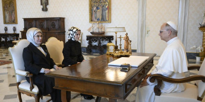 Prva dama Turske je pozvala papu Lava XIV da pojača odgovor hrišćanskog sveta na kontinuirane patnje izazvane kontinuiranom blokadom i vojnim operacijama Izraela.