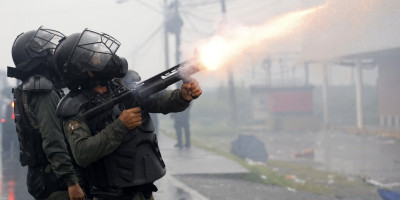 Policija je odgovorila suzavcem i gumenim mecima. Gradonačelnik Emil Rožer Lomberti nazvao je izgrednike "urbanom gerilskom grupom".
