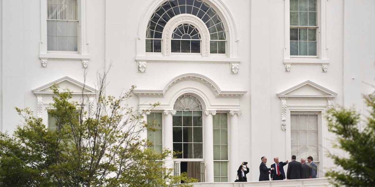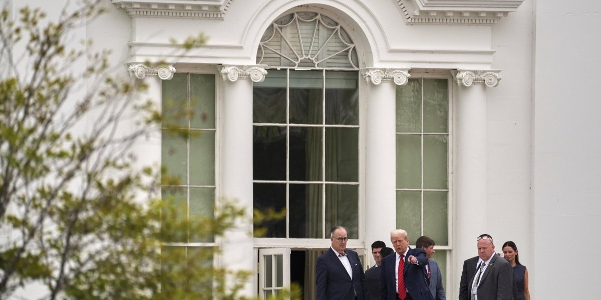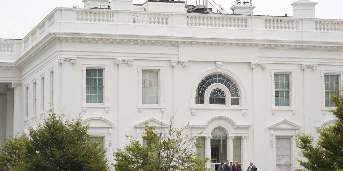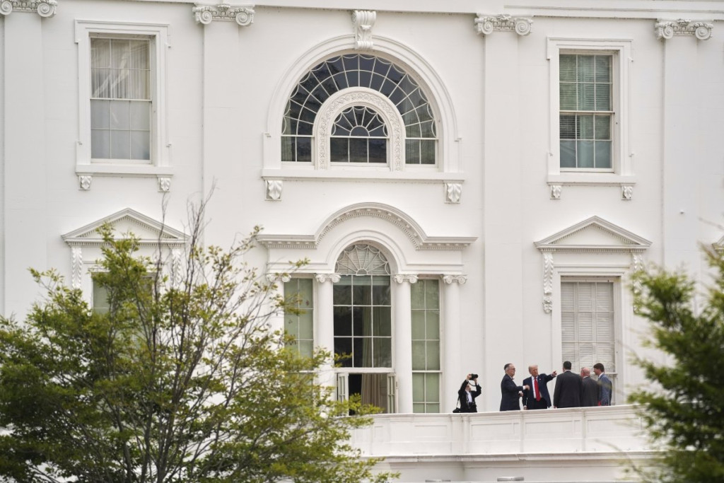 Tramp se tokom nadgledanja napretka građevinskih radova na teritoriji rezidencije popeo na krov zapadnog krila Bele kuće, gde se nalazi Ovalni kabinet, u pratnji obezbeđenja i pomoćnika.