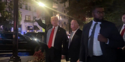 Međutim, Tramp nije odgovorio na pitanje – pozdravio je propalestinske demonstrante okupljene ispred restorana i ušao u automobil. Zbog glasnih zvižduka okupljenih nije jasno da li je uopšte čuo novinarsko pitanje.
