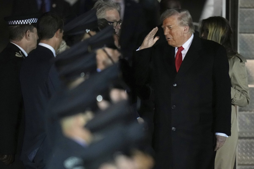 Trampa i njegovu suprugu Melaniju dočekali su princ Vilijam i princeza Kejt, a potom su im se pridružili kralj Čarls i kraljica Kamila u vožnji kroz zamak uz pratnju 1.300 vojnika.