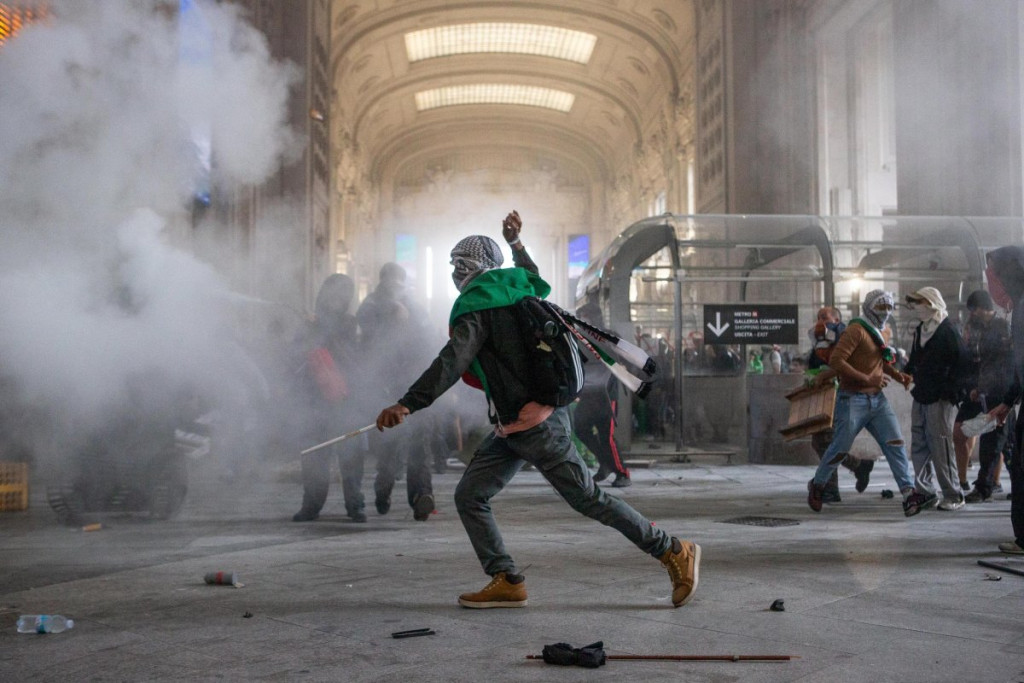 Grupa pro-palestinskih demonstranata napala je glavnu železničku stanicu u Milanu, razbijajući izloge i ispaljujući suzavac.