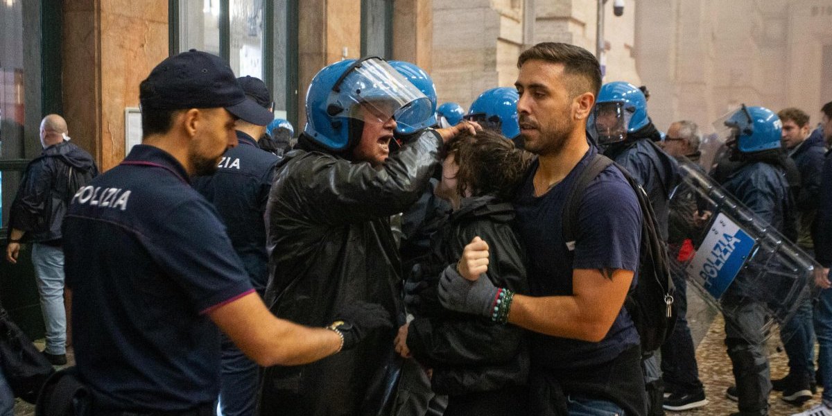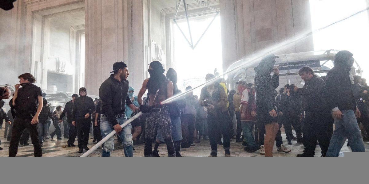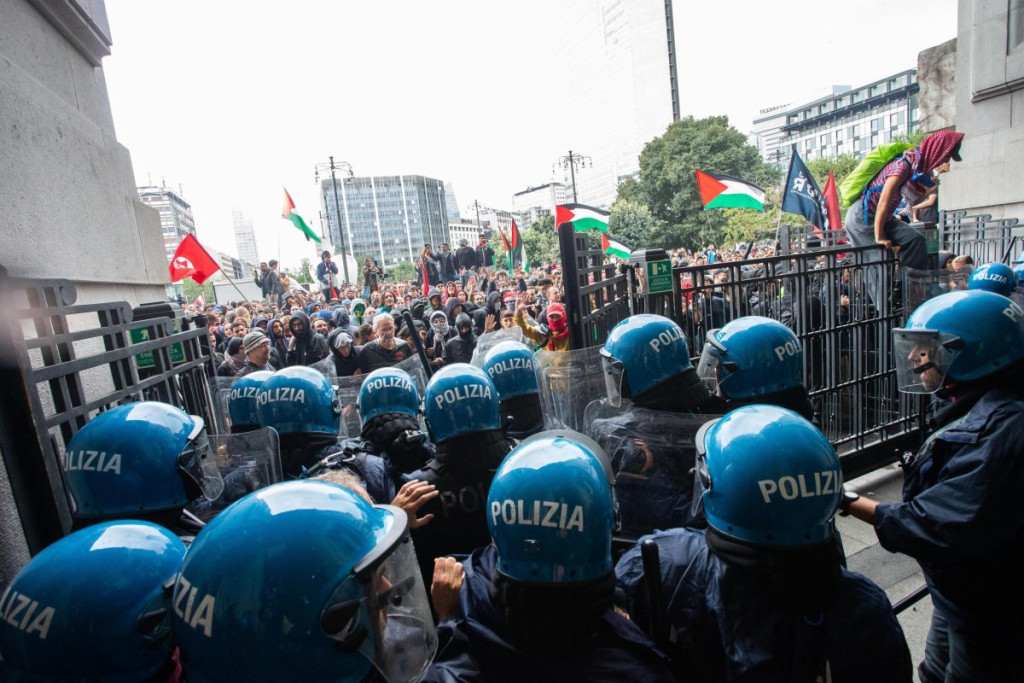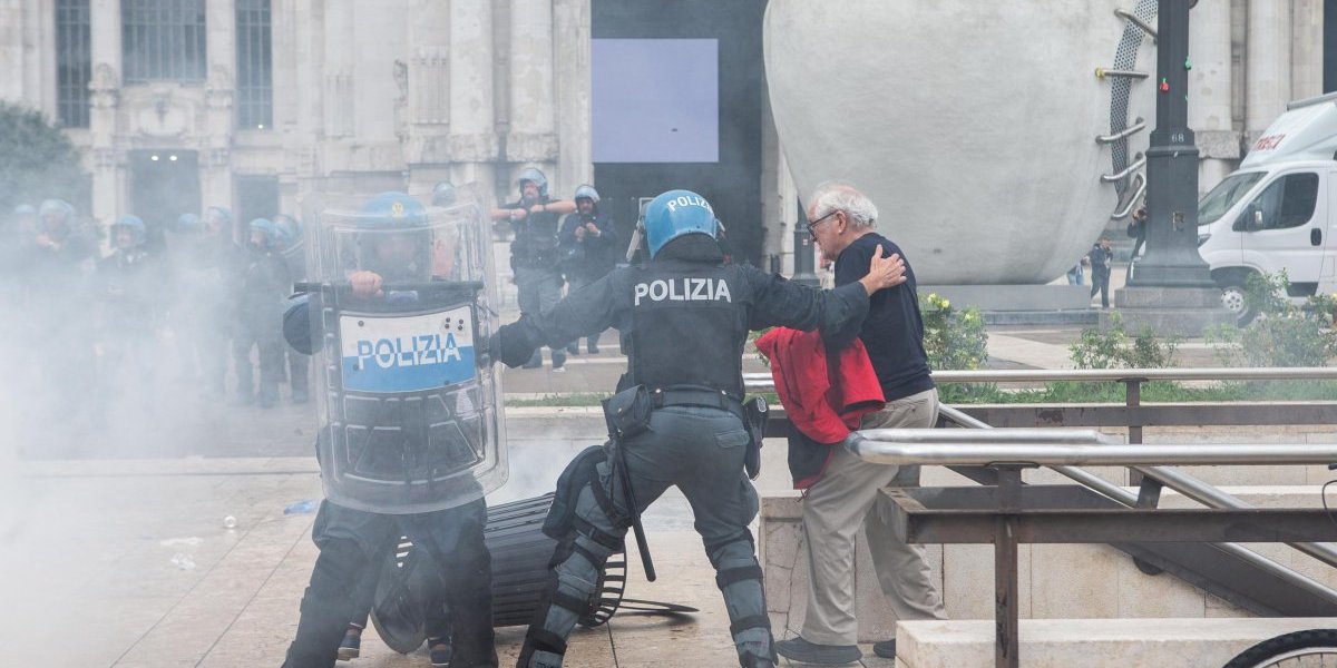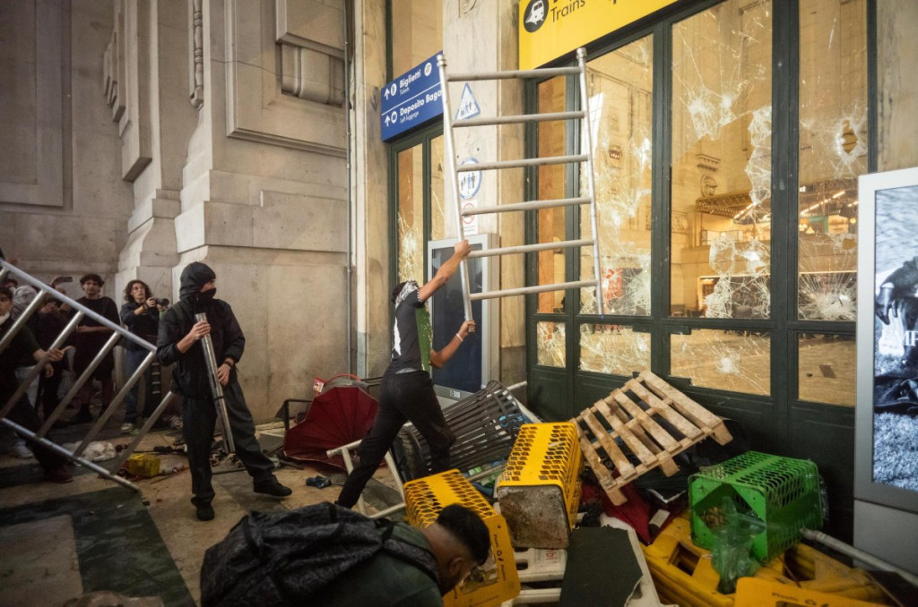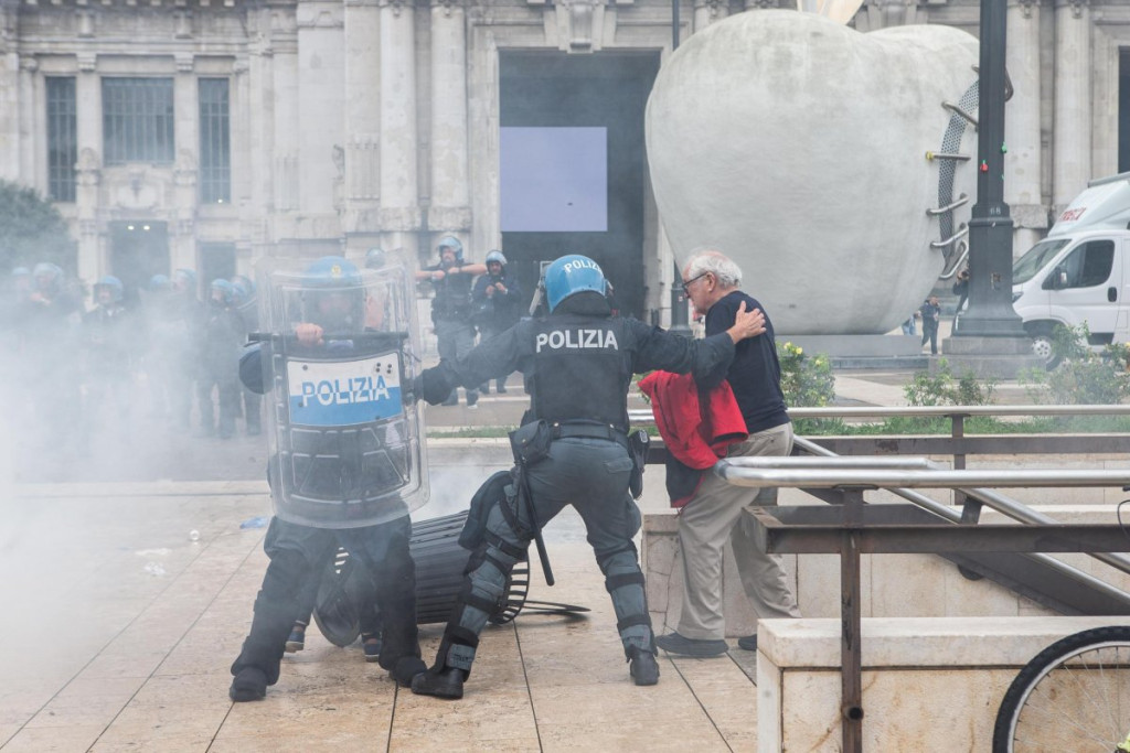 Demonstranti u Milanu krenuli su u otvoreni sukob s policijom – gađali su ih polomljenim predmetima i ukradenim vatrogasnim crevima. U naletu nasilja razvaljena su glavna vrata železničke stanice, a kretanje vozova bilo je blokirano, slično kao tokom ranijih protesta u Rimu.