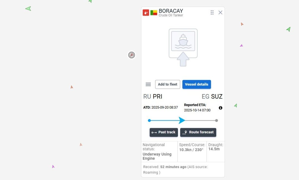 Pre nego što je tanker Borakaj zaplenila francuska mornarica, bio je na putu ka indijskoj luci Vadinar, u kojoj se nalazi rafinerija nafte kompanije Najara Enerdži, u delimičnom vlasništvu Rosnjefta. Rojters nije mogao da utvrdi da li se tanker trenutno kreće tamo.