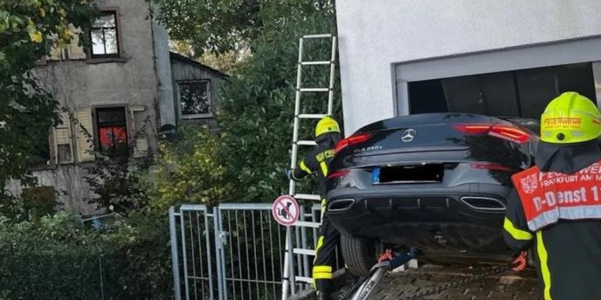 Neverovatan incident u nemačkom gradu Frankfurtu: automobil marke „mercedes CLA“ završio je naopačke u šahtu automobilskog lifta u stambenoj zgradi u četvrti Bergen-Enkhajm.
