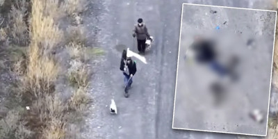 U videu se vidi kako se jedan od muškaraca, koji u trenutku napada ide sa psom, zaustavlja dok dron lebdi ispred njega, a zatim se obrušava i pogađa ga direktno u grudi. Muškarac je, prema snimku, poginuo na mestu, dok se pas u kadru vidi kako se grči od povreda.