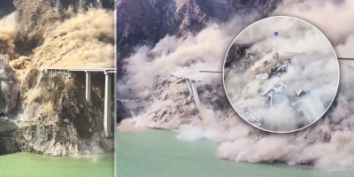 The Hongqi Bridge in Shuangjiangkou, Sichuan Province, China, partially collapsed today. Authorities believe that cracks in the nearby mountainside — likely caused by water accumulation from a nearby reservoir — played a major role in the incident. pic.twitter.com/v1bdbj5KLJ