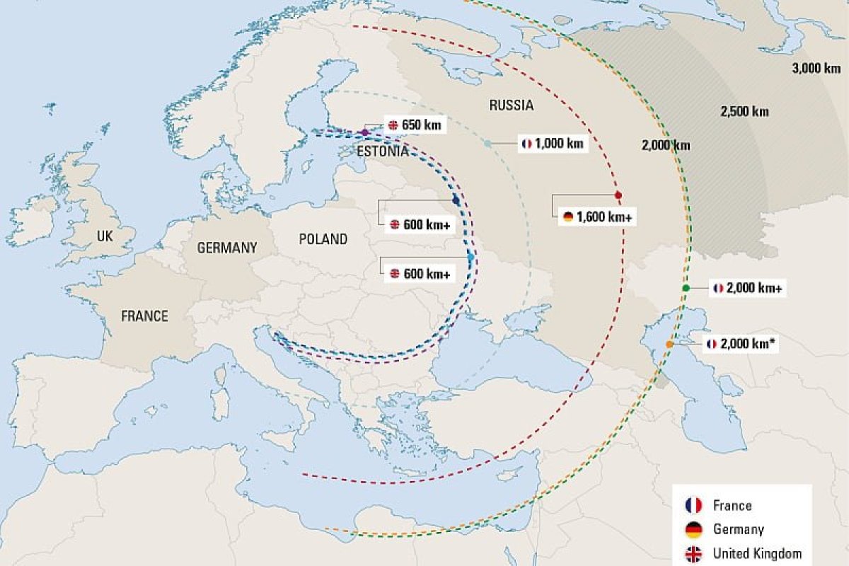 Francuska, kao druga nuklearna sila u Evropi, prema IISS-u ima posebno važnu ulogu. Njene krstareće i balističke hipersonične rakete imaju domet veći od 2.000 kilometara, što obuhvata gotovo celokupnu evropsku teritoriju Ruske Federacije.