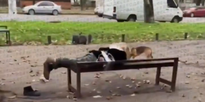 Na društvenim mrežama pojavio se video na kojem se vidi žena zalepljena za klupu, potrbuške, dok njen mali pas stoji pored nje i povremeno joj liže lice. Ljudi prolaze pored, neki je snimaju, a na zemlji se vidi razbacano đubre iz pocepanog džaka.