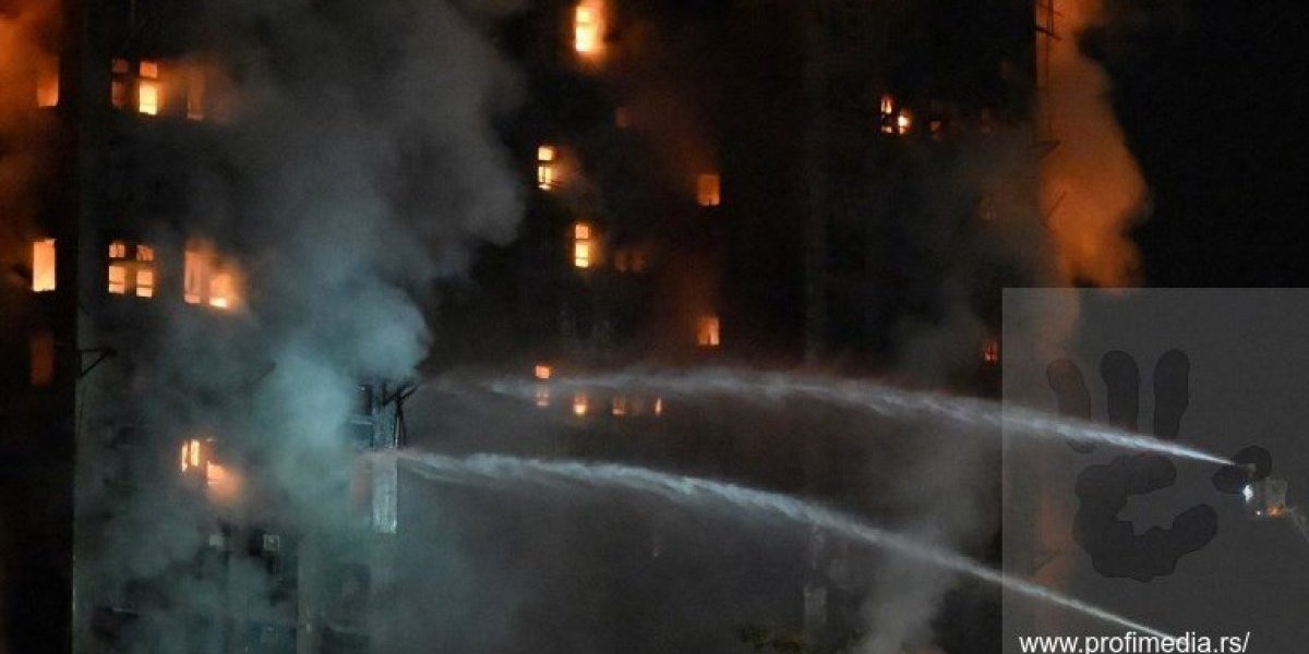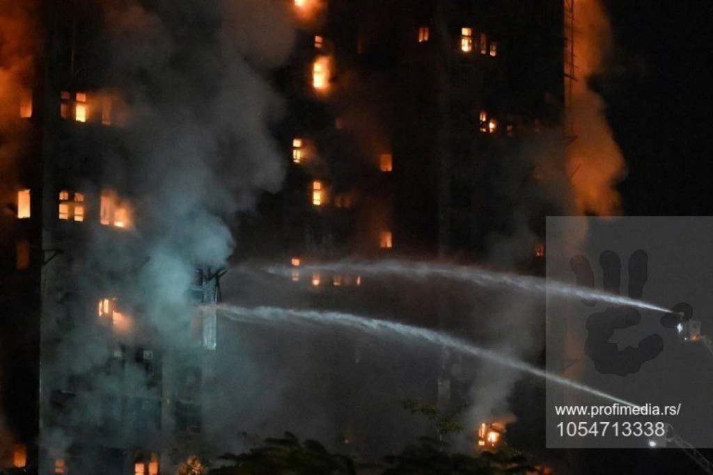 Požar se proširio na bambusove skele postavljene oko spoljne fasade solitera, a vatrogasci su pokušavali da obuzdaju plamen koristeći merdevine i vodu sa visine, preneo je ranije AP.