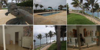 Na nekoliko video-snimaka vidi se raskošan eksterijer koji podseća na luksuzni rizort: bazen, palme i vijugava staza koja vodi ka okeanu. Jedna od fotografija prikazuje radnu sobu sa tablom za pisanje na kojoj stoje reči „moć“, „obmana“, „zavere“ i „političko“.