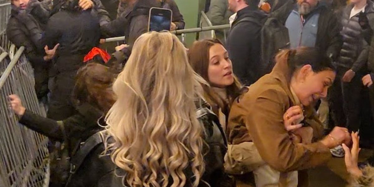 Na snimcima koji kruže društvenim mrežama vidi se grupa ljudi kako se tuče uz ogradu, dok pripadnici obezbeđenja stoje po strani. U jednom trenutku žena je pala na zemlju nakon što je, prema navodima svedoka, udarena i izgubila svest.