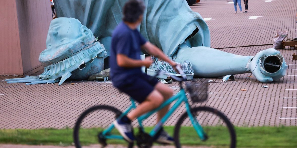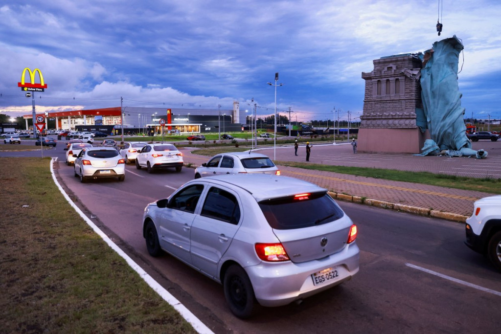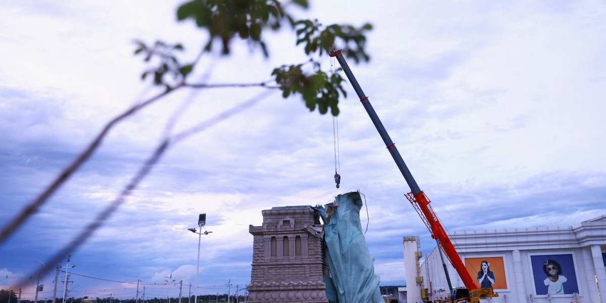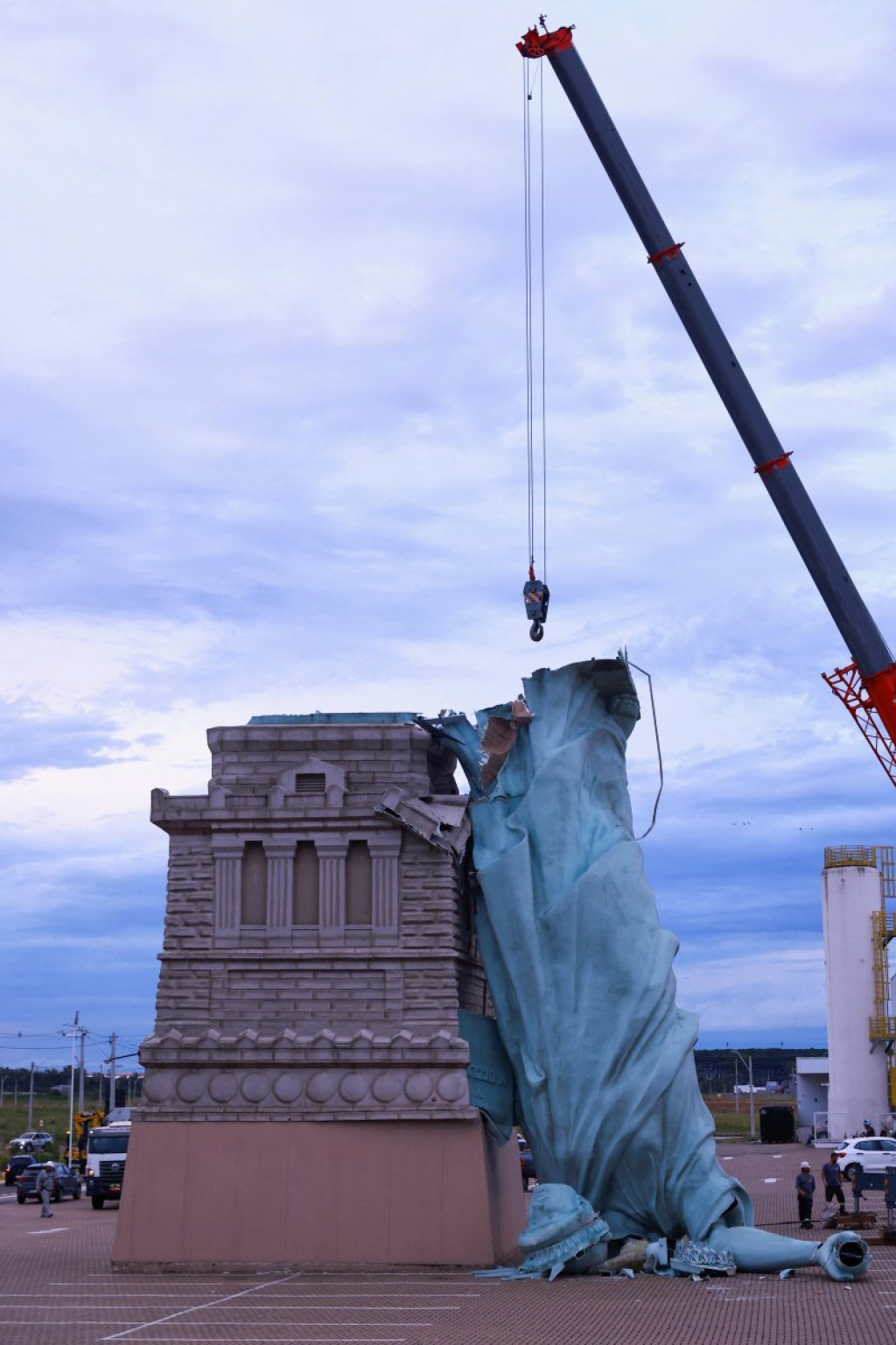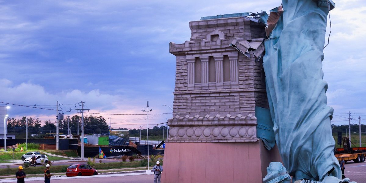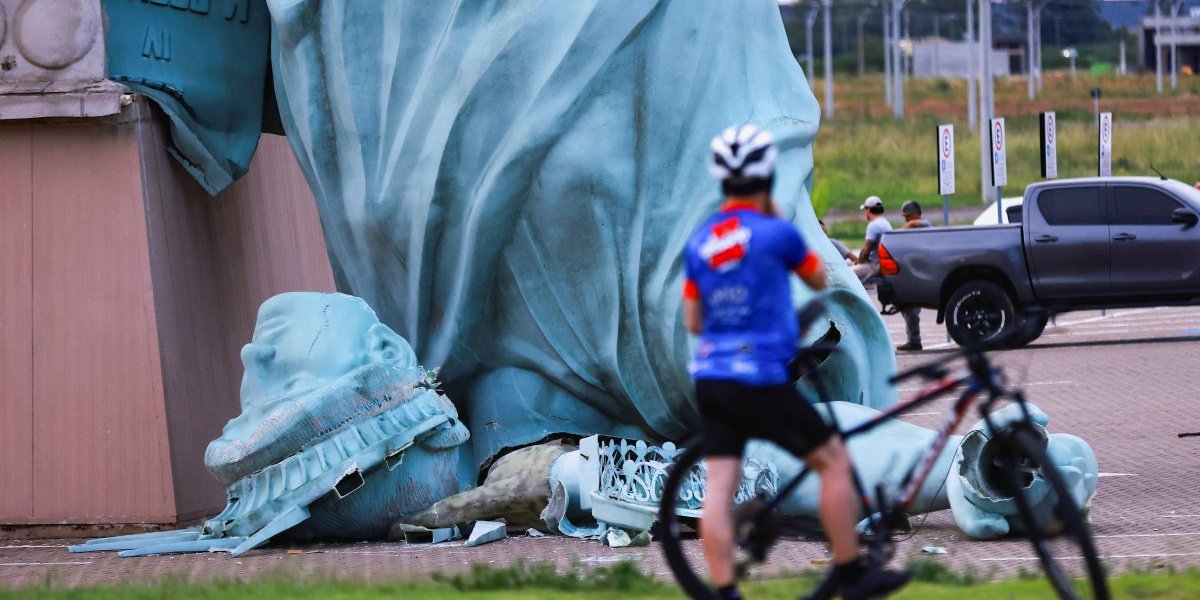 WATCH: Replica of the Statue of Liberty topples due to strong winds in Guaíba, Brazil pic.twitter.com/pMxN7KLu5y