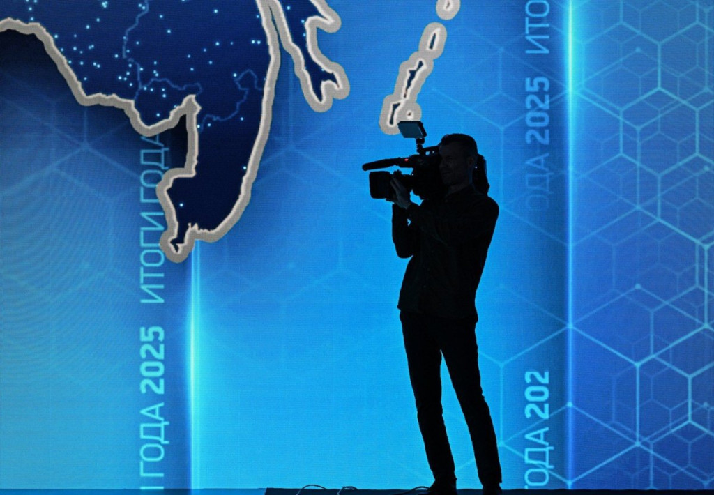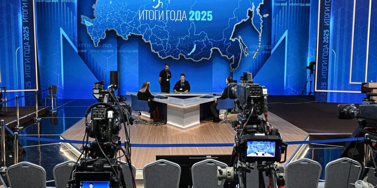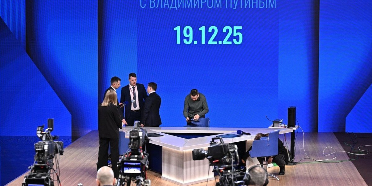 Priprema lokacije za direktnu liniju i konferenciju za novinare ruskog predsednika Vladimira Putina.