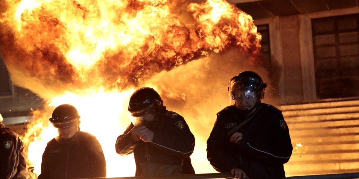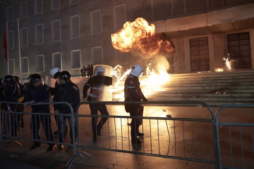 ⚡ #AHORA | Se lanzan cócteles molotov contra la oficina del primer ministro de Albania en Tirana mientras los manifestantes de la oposición se enfrentan a la policía. pic.twitter.com/6GJlCPWRlK