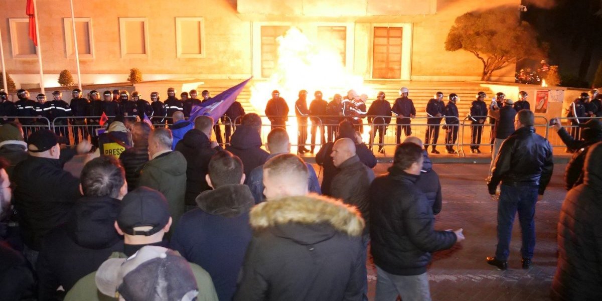 Stotine građana okupilo se oko 18 časova ispred kabineta albanskog premijera Edija Rame, gde su tokom govora lidera opozicije bačeni Molotovljevi kokteli prema zgradi.
