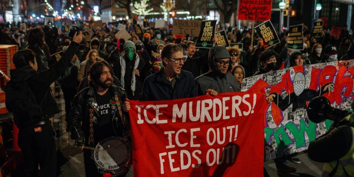 NOW: "Kristi Noem will Hang!" Huge crowd chants in Foley Square NYC, also "Save a life, kill an ICE" as they gather to protest the ICE killing of Renee Good in Minneapolis.