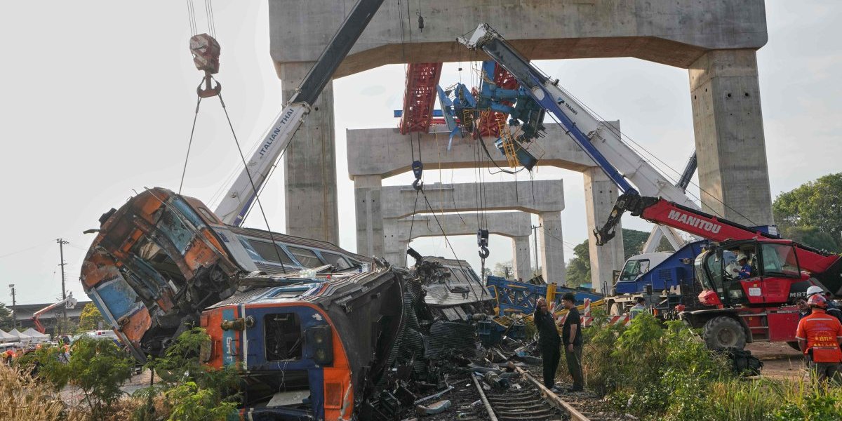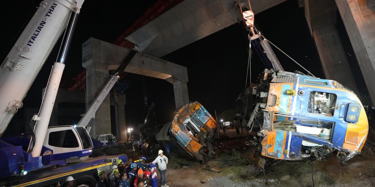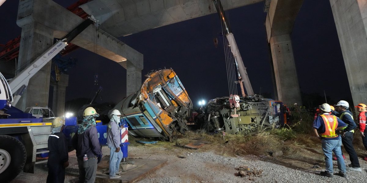 Prema Državnim železnicama Tajlanda (SRT), dizalica je pala na dva vagona voza. Usled urušavanja vagoni su iskočili iz šina i zapalili se, prenose lokalni mediji.