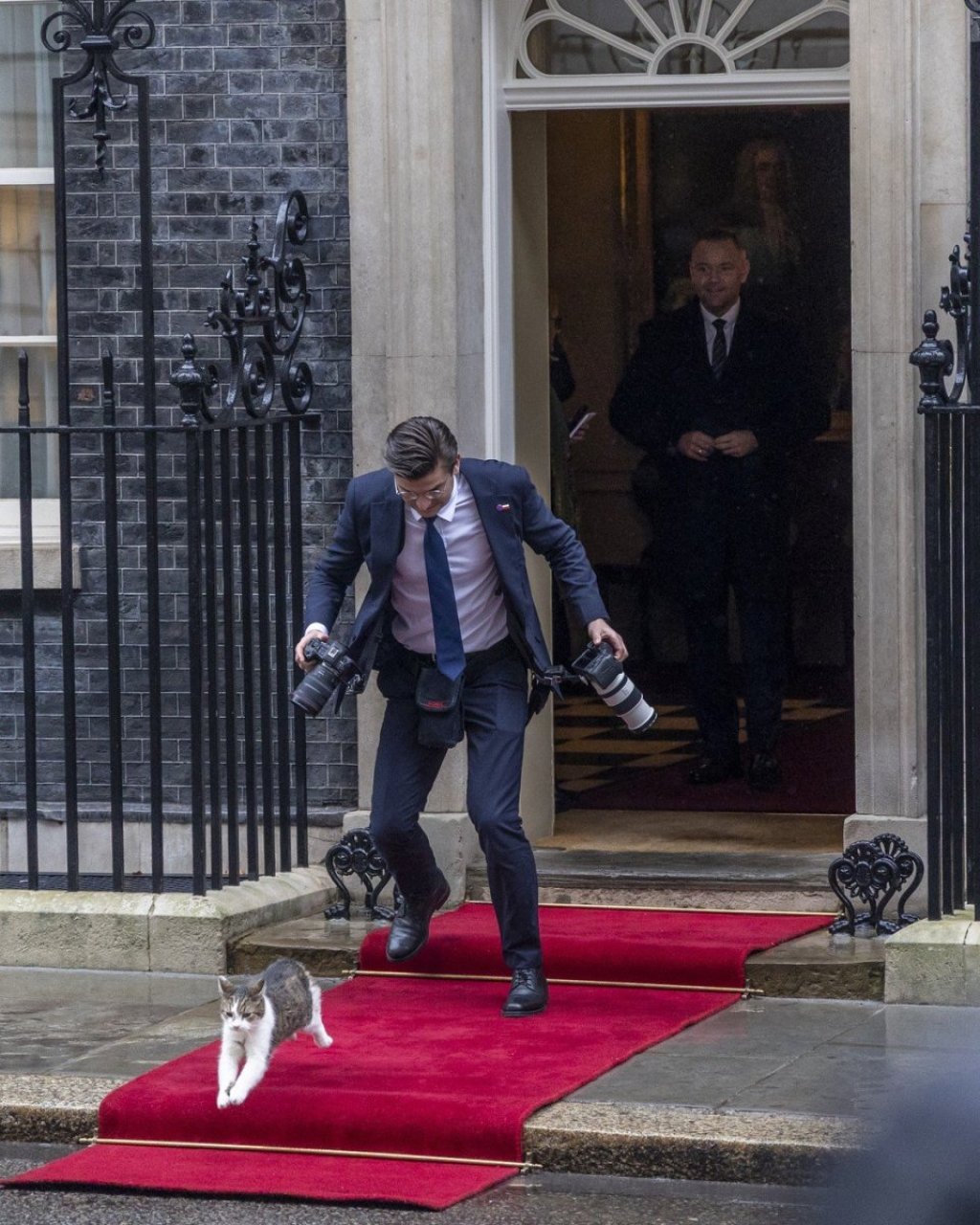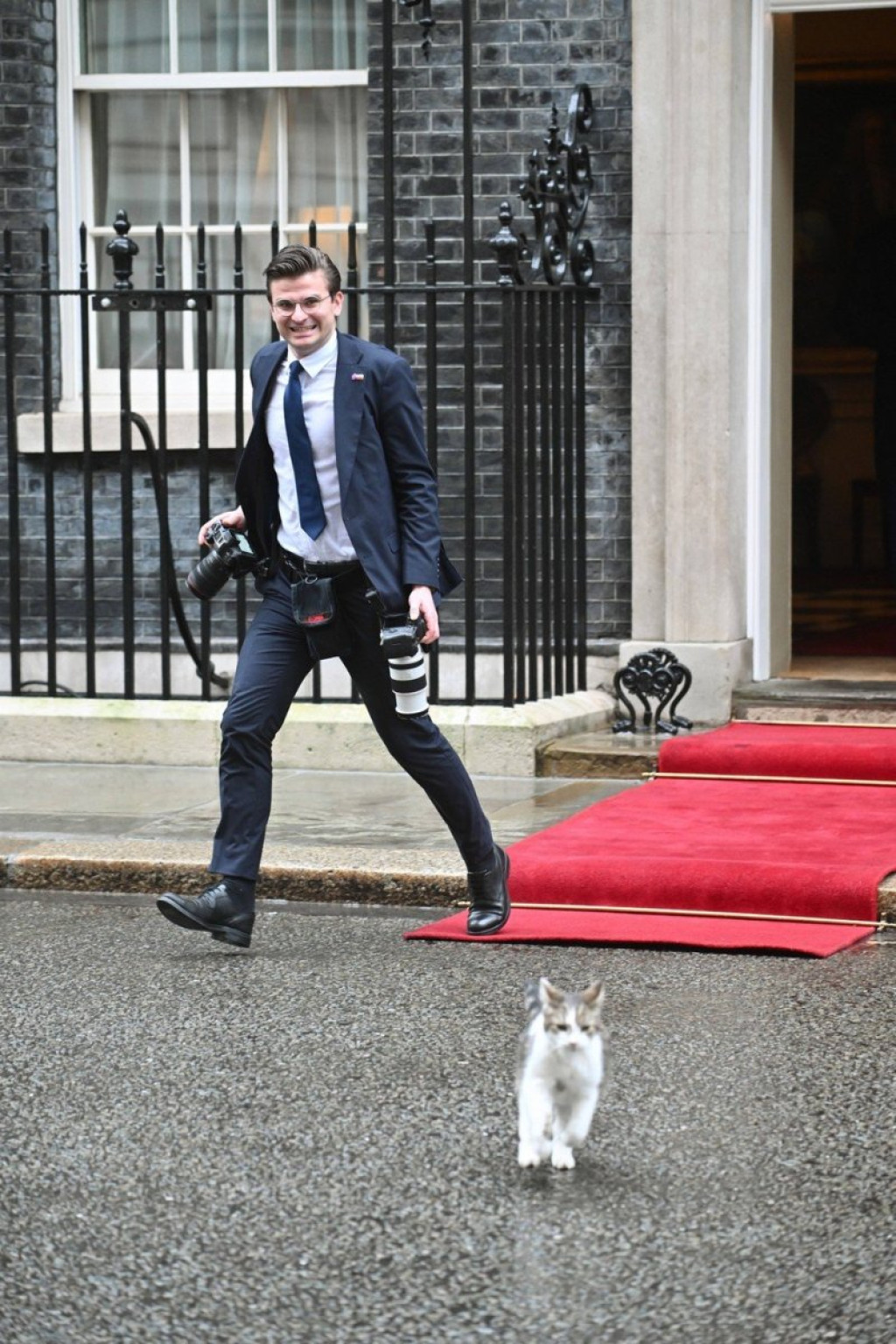 Fotograf poljskog predsednika Karola Navrockog zamalo je pao ispred Dauning strita 10 kada ga je, prilikom izlaska sa sastanka, sapleo čuveni mačor Lari, dugogodišnji „glavni mišolovac“ britanskog premijera.