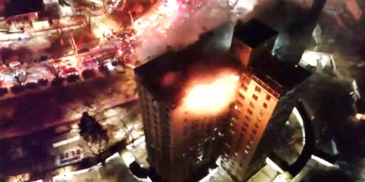 Vatrogasci su se u ranim jutarnjim satima u subotu borili sa velikim požarom, nakon što je vatra zahvatila poslednja dva sprata stambene višespratnice u Njujorku.