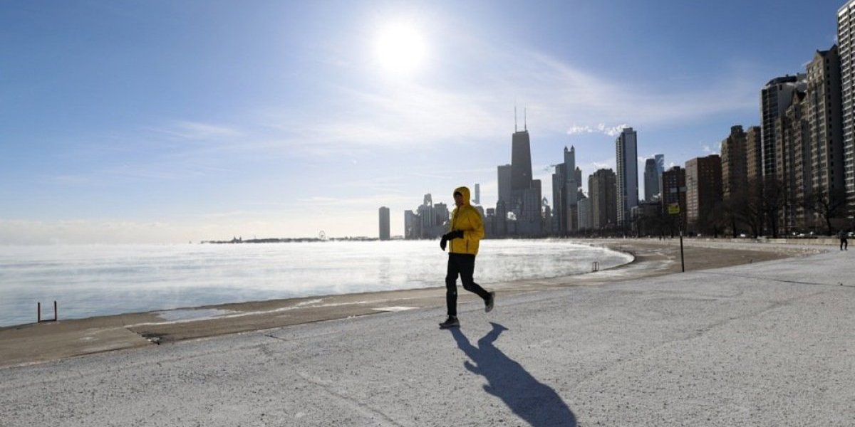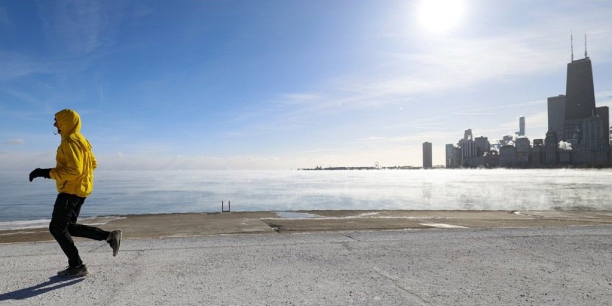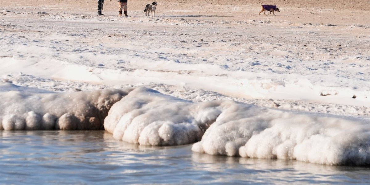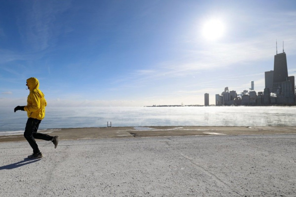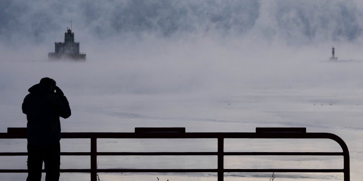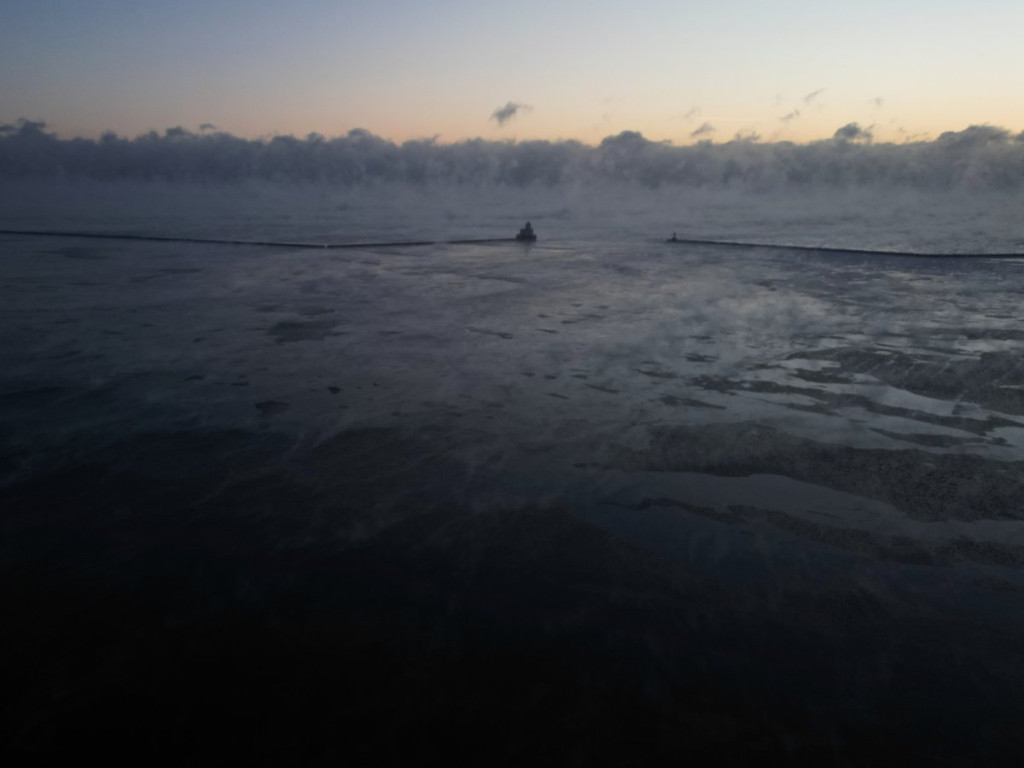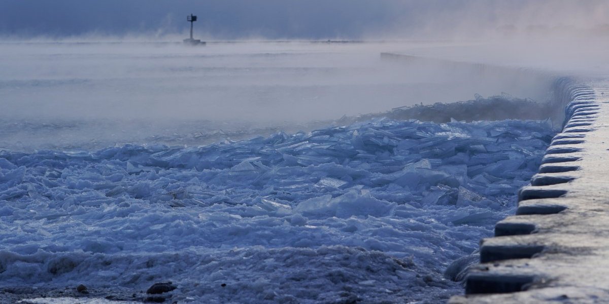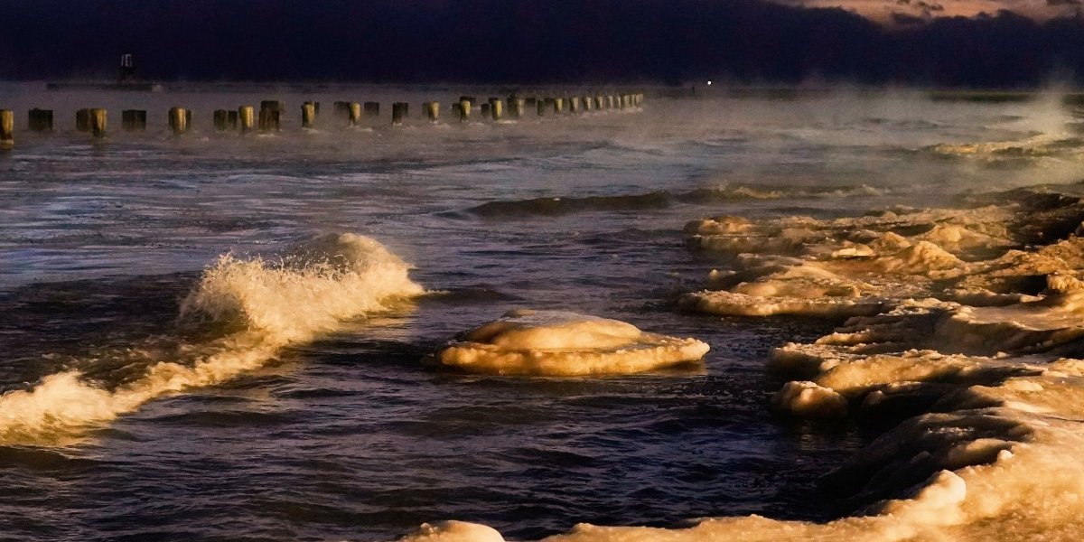 Ovaj prizor deluje neobično s obzirom na to da su temperature oko jezera Mičigen u SAD prethodnih dana bile iznad proseka. Međutim, snežna oluja koja je pogodila region prošle nedelje donela je temperature ispod nule.