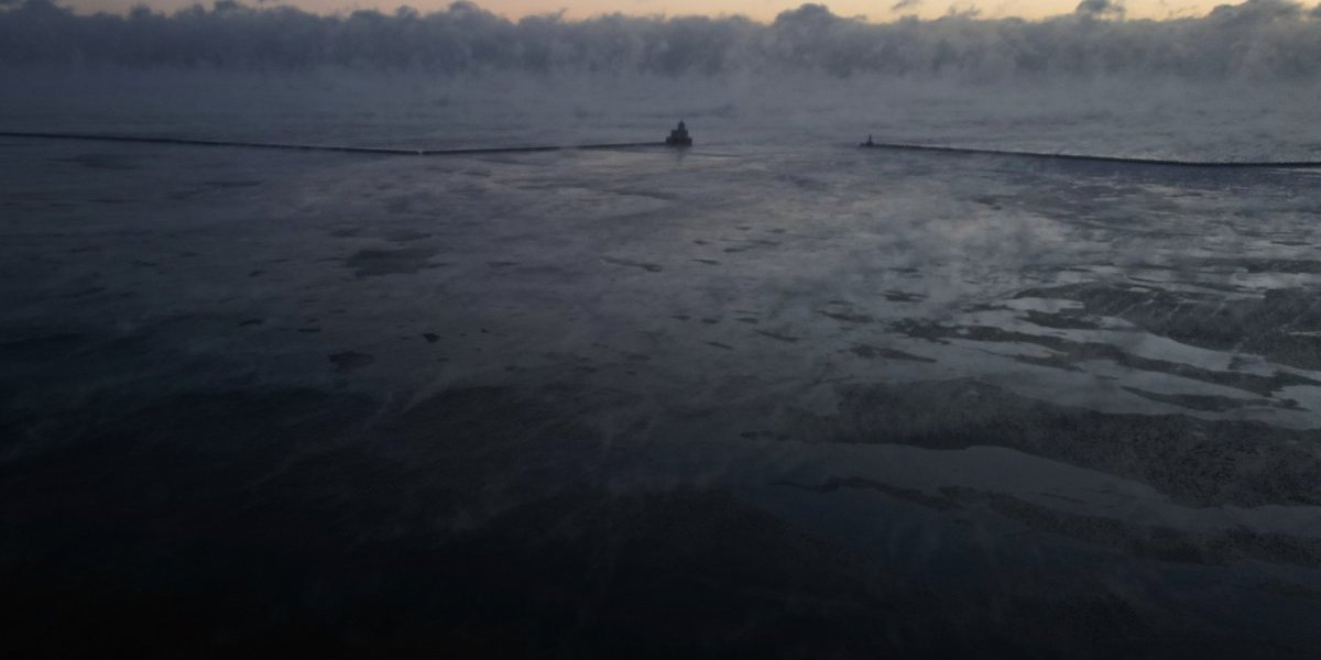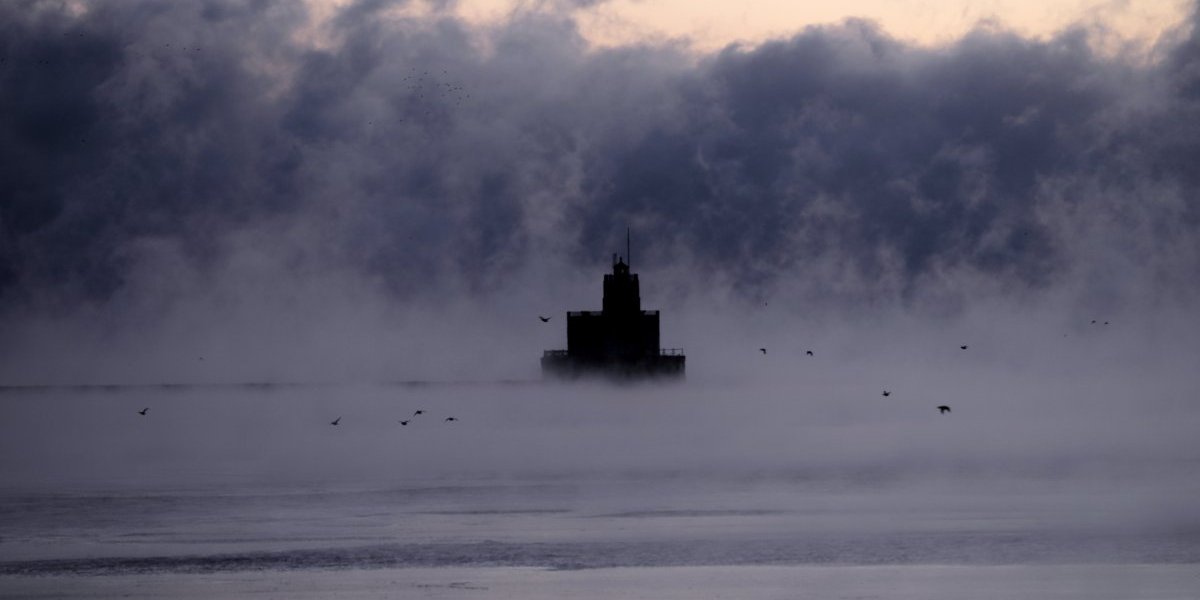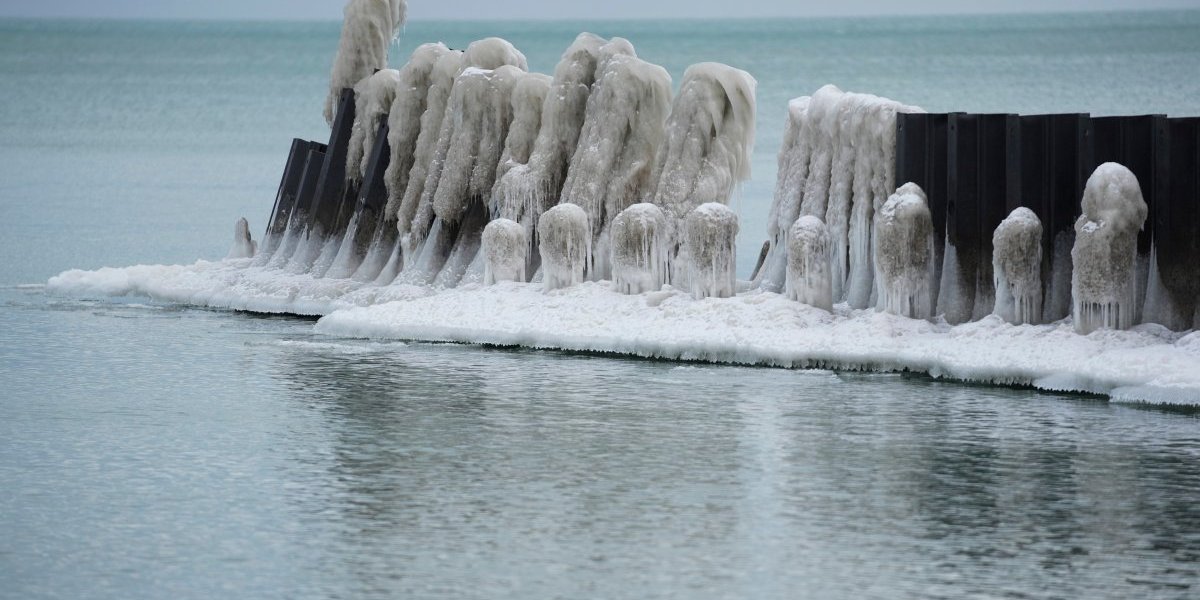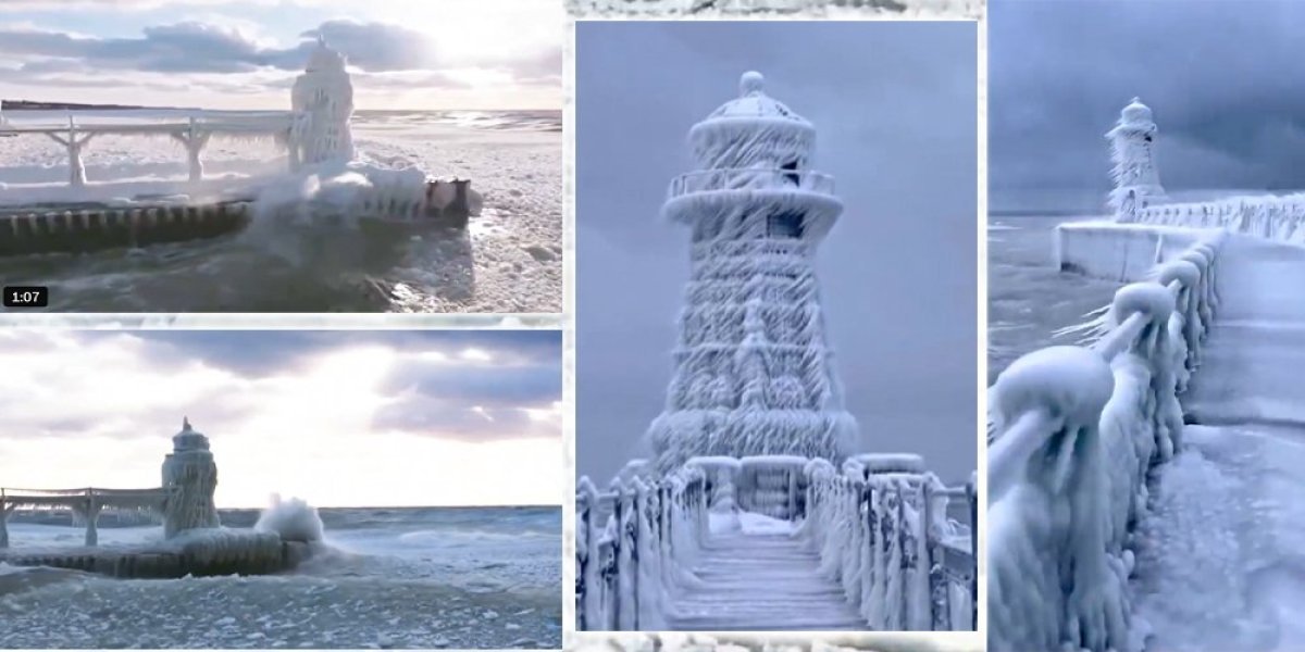 Nakon snažne mećave u SAD, svetionici u Mičigenu gotovo su potpuno okovani ledom. Ledenice vise sa konstrukcija do te mere da su pojedini delovi građevina jedva prepoznatljivi. Na krupnim kadrovima vidi se da su delovi površine jezera potpuno prekriveni snegom.