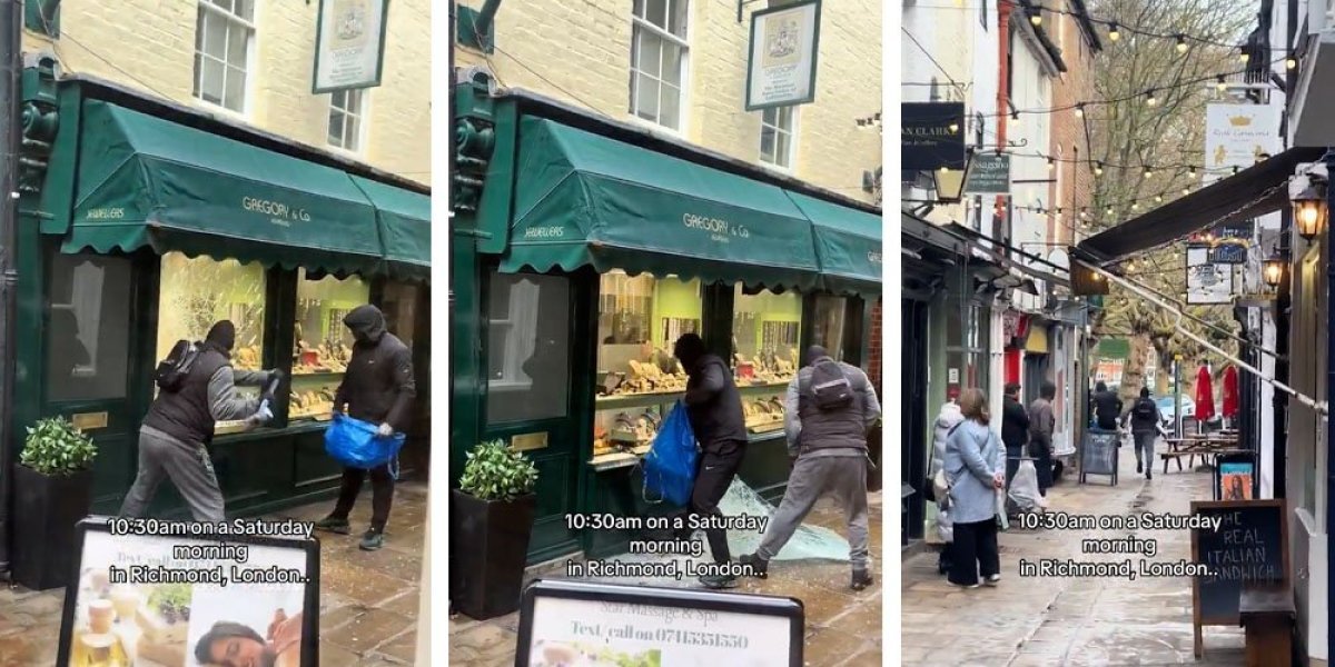 Zaposleni iz obližnje radnje izjavio je za "Dejli mejl" da su se napadači pojavili iznenada, noseći veliki malj i torbu, nakon čega su počeli da razbijaju izlog zlatare.