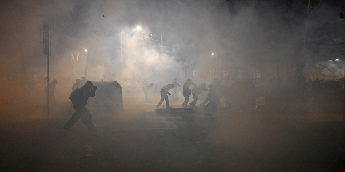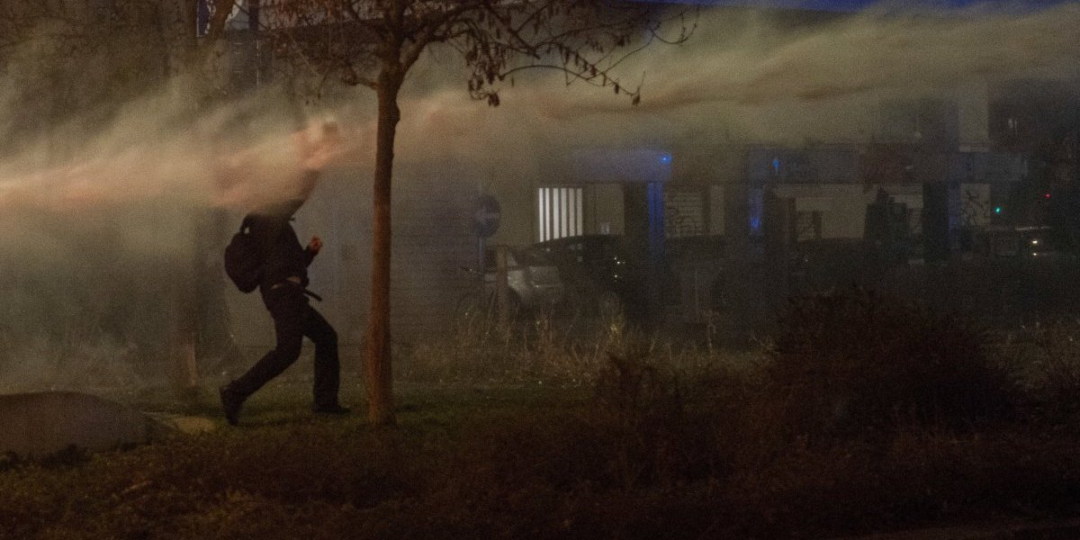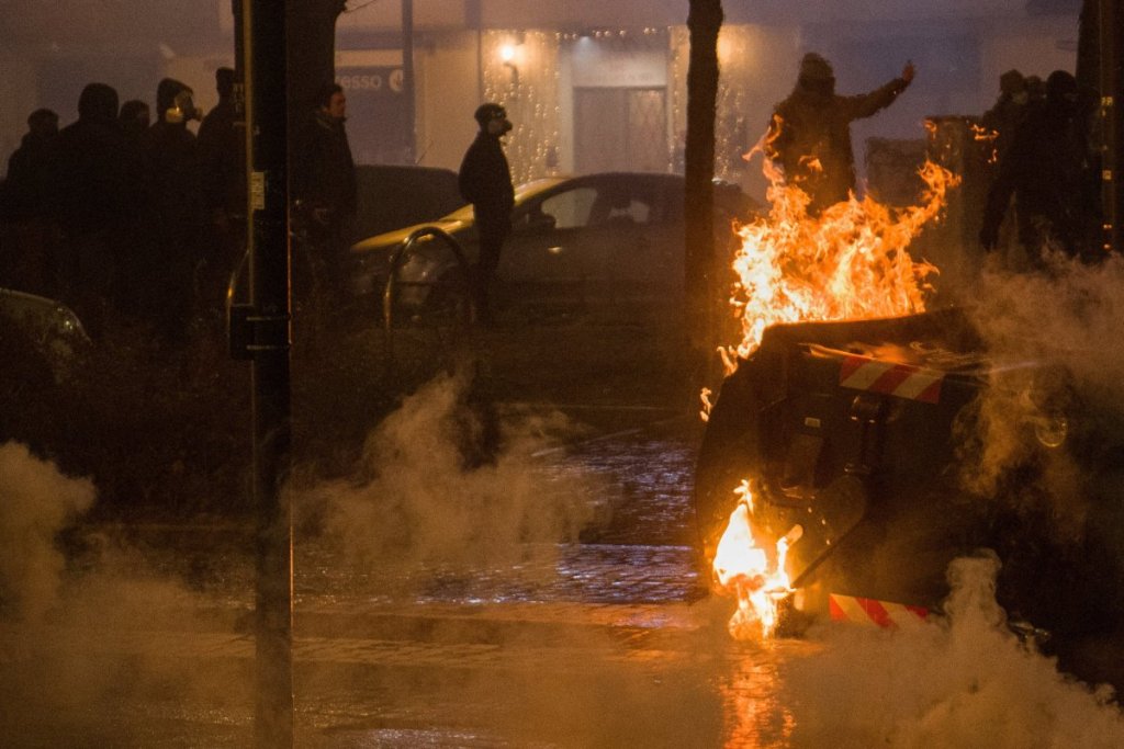 Demonstranti su na policiju bacali kamenje i druge predmete, korišćeni su Molotovljevi kokteli, zapaljene kante za smeće, kao i jedan policijski kombi. Policija je odgovorila suzavcem i vodenim topovima.