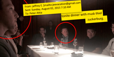 U elektronskoj poruci od 2. avgusta 2015. godine, upućenoj piscu Piteru Atiji, Epstin je napisao da će tog dana večerati sa Maskom i Zakerbergom, na šta mu je Atija odgovorio da to „zvuči kao sjajna večera“.
