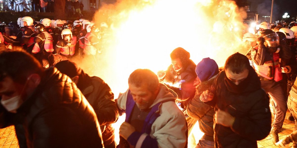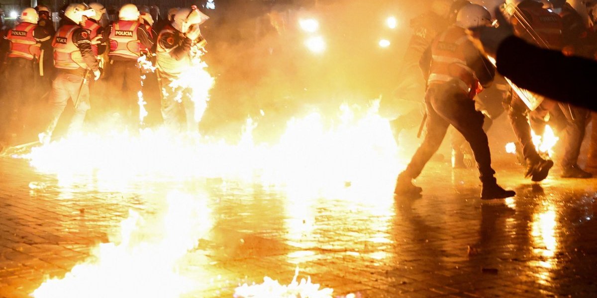Nacionalni protest ujedinjene opozicije u utorak uveče ponovo je eskalirao u sukobe sa snagama reda. Demonstranti su zasuli zgradu u kojoj se nalazi kancelarija premijera Edija Rame vatrometima i Molotovljevim koktelima, na šta je policija odgovorila vodenim topovima i suzavcem.