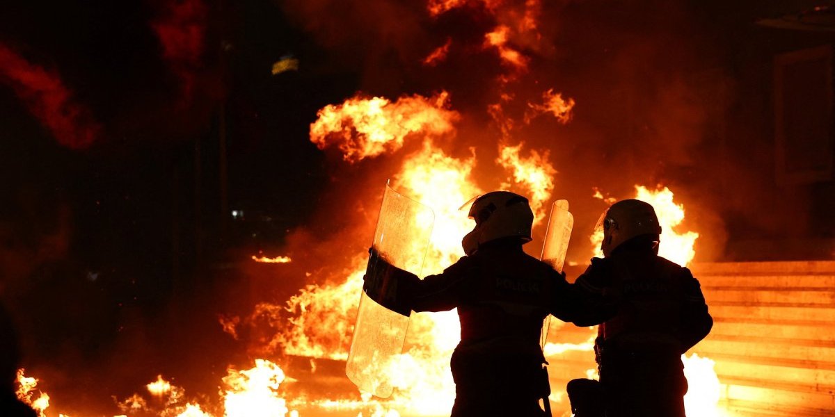 Najmanje četiri policajca su povređena tokom neredа, dok je jedno vozilo televizije ABC zapaljeno.