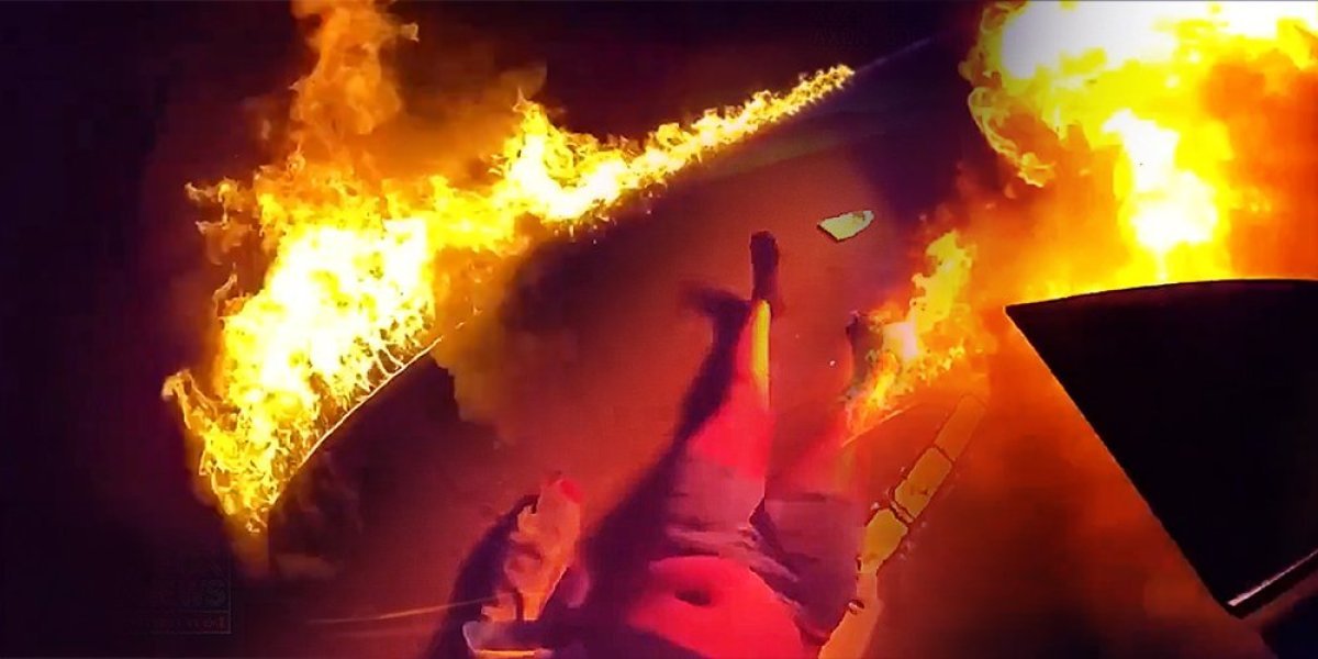 Na snimku se vidi kako policajac Almin Rešidović prilazi automobilu zahvaćenom plamenom i izvlači ženu sa suvozačeve strane dok joj je kosa gorela. Rešidović joj je odmah pružio prvu pomoć do dolaska hitne pomoći, koja je potom preuzela brigu o povređenoj.